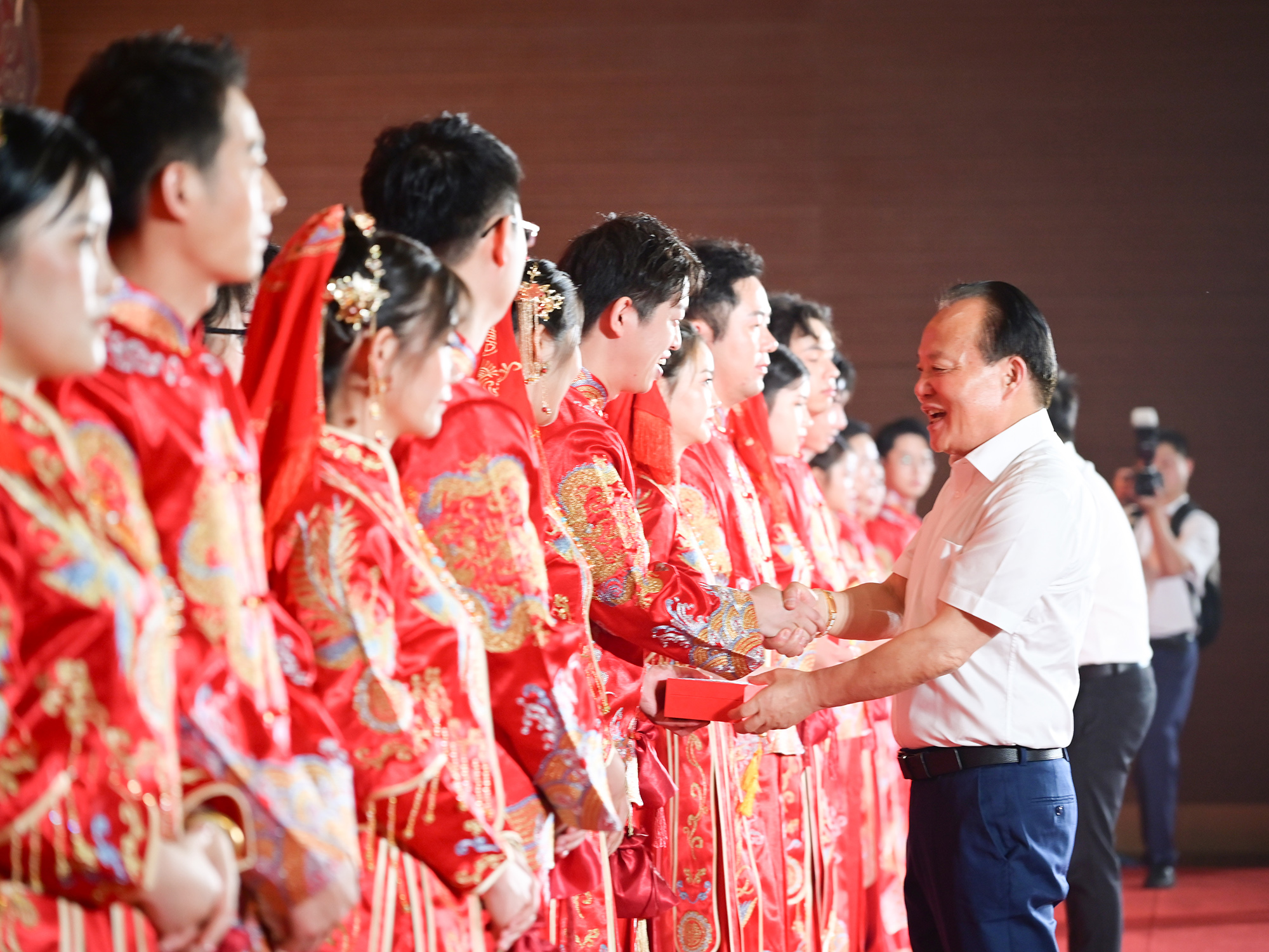 【提要描述】陪同着喜庆的音乐,新人们蒙上红盖头,手牵红绣球,走上红毯,迈入喜堂。他们活动坚定、执手前行,迈偏激盆、跨过马鞍,期待今后日子红红火火、平平安安……今天上午,“缘定庄闲和网址 情满桐城”庄闲和网址控股集团首届职工集体婚礼在庄闲和网址总部大楼举行,来自该集团的21对新人喜结连理,这也是桐乡首场由企业举行的职工集体婚礼。